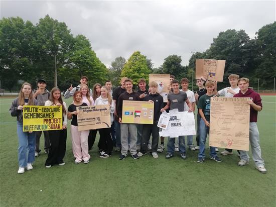 Am Dienstag, den 08.07.2025, organisierten wir – die damalige Klasse 10A – einen Spendenlauf zugunsten der zivilen Opfer des Sudan-Konflikts. Zuvor hatten wir uns im Unterricht intensiv mit dem Thema auseinandergesetzt. Dabei wurde uns deutlich, dass dieser Krieg in Politik und Medien kaum Beachtung findet und das Leid der Betroffenen häufig übersehen oder gar verdrängt wird.